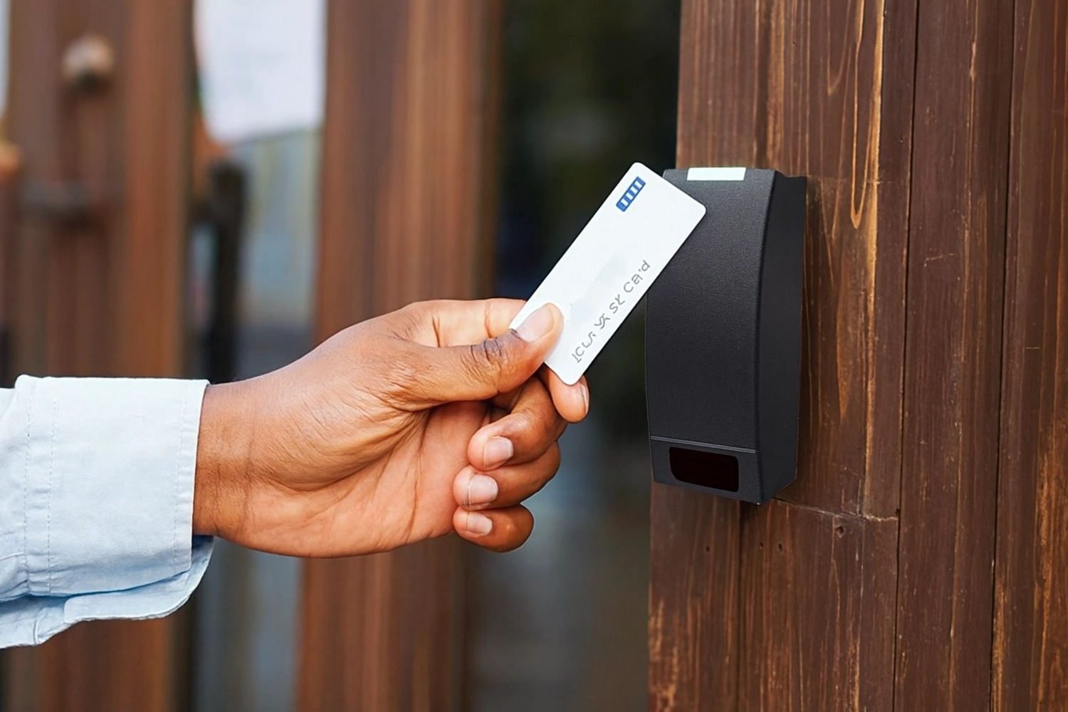 A secure door access management system that utilizes card readers, PIN codes, or biometric authentication to regulate and monitor entry to restricted areas. This solution helps prevent unauthorized access, improves security management, and provides detailed access logs for auditing purposes.